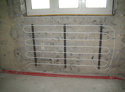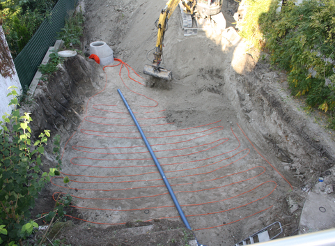 Die neue Heizungsanlage besteht aus einer Sole-/Wasser-Wärmepumpe mit Direktverdampfer. Die Wärmeübertragung erfolgt über Wand- und Fußbodenheizungen.