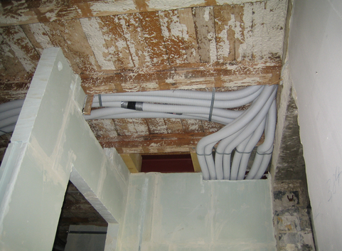 Auf der Kellerdecke wurde eine 6 cm starke Dämmung aus Polystyrol XPS (WLG 035) verlegt. Der U-Wert der Kellerdecke konnte von 1,00 W/(m²*K) auf 0,46 W/(m²*K) verbessert werden.