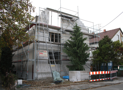 Der Gebäudestandard wurde durch geeignete Dämmmaßnahmen, Fenster mit entsprechenden U-Werten und Wahl der Anlagentechnik erreicht.