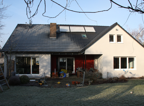 Der Gebäudestandard wurde durch geeignete Dämmmaßnahmen, Fenster mit entsprechenden U-Werten und Wahl der Anlagentechnik erreicht.