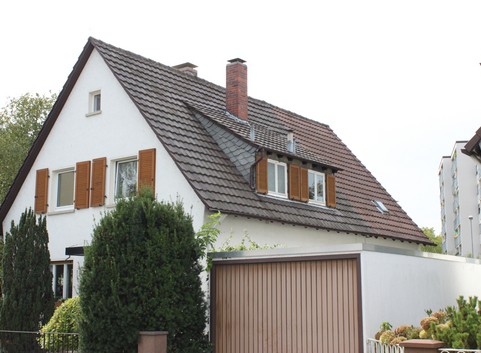 Auf dem Schrägdach wurde eine 22 cm Aufsparrendämmung aus Polyurethan (WLG 028) verlegt. Der U-Wert des Daches konnte von 0,42 W/(m²*K) auf 0,12 W/(m²*K) verbessert werden