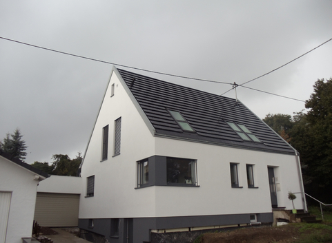Der Gebäudestandard wurde durch geeignete Dämmmaßnahmen, Fenster mit entsprechenden U-Werten und Wahl der Anlagentechnik erreicht.