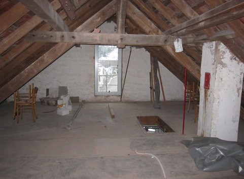Die Kellerdecke hatte oberseitig eine 2 cm starke Trittschalldämmung aus EPS (WLG 040). Ergänzend wurde die Kellerdecke unterseitig mit einer 10 cm starken Dämmung aus Phenolhartschaum (WLG 022) angebracht. Der U-Wert der Kellerdecke konnte von 0,922 W/(m²*K) auf 0,180 W/(m²*K) verbessert werden.