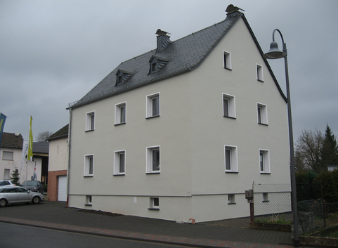 Die Außenwände aus 30 cm Hohlblocksteinen bzw. 45 cm Sandsteinen wurden mit einem 14 cm dicken WDVS aus Polystyrol EPS (WLG 032) gedämmt. Der U-Wert der Außenwände konnte von 1,39 bzw. 2,41 W/(m²*K) auf 0,20 bzw. 0,21 W/(m²*K) verbessert werden.
