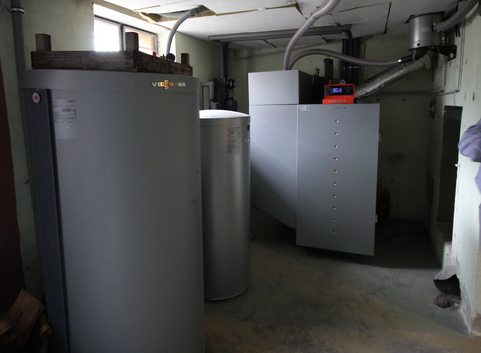Die Beheizung und Warmwasseraufbereitung erfolgt über einen Pelletkessel mit einer Leistung von 4-12 kW. Die Wärmeübertragung erfolgt über Heizkörper.