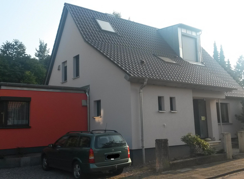Die Außenwände aus 30 cm Hohlblocksteinen wurden mit einem 18 cm dicken WDVS aus Polystyrol EPS (WLG 032) gedämmt. Der U-Wert der Außenwände konnte von 1,16 W/(m²*K) auf 0,15 W/(m²*K) verbessert werden.