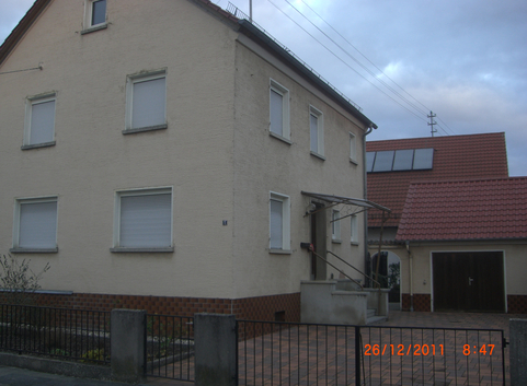 Die Außenwände aus 25 cm Ziegelsteinen wurden mit einem 16 cm dicken WDVS aus Polystyrolschaum (WLG 032) gedämmt. Der U-Wert der Außenwände konnte von 1.66 W/(m²*K) auf 0.18 W/(m²*K) verbessert werden.