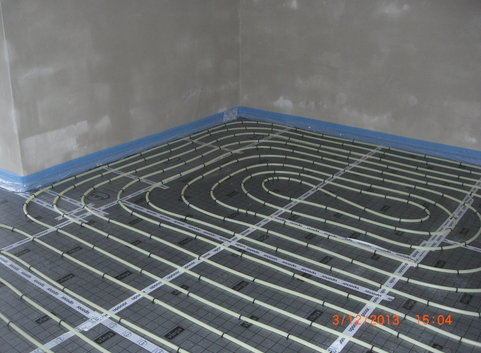 Ein Gas-Brennwertkessel mit einer Leistung von 5-20 kW in Kombination mit einer thermischen Solaranlage übernehmen die Beheizung und Warmwasseraufbereitung. Die Wärmeübertragung erfolgt über Fußbodenheizungen.
