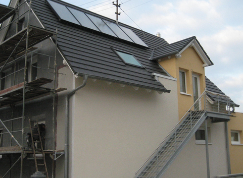 Der Gebäudestandard wurde durch geeignete Dämmmaßnahmen, Fenster mit entsprechenden U-Werten und Wahl der Anlagentechnik erreicht.