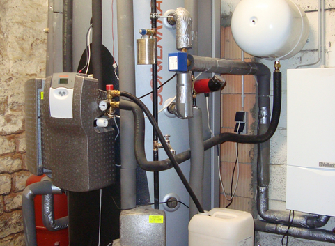 Die neue Heizungsanlage besteht aus einem Gas-Brennwertgerät und einer thermischen Solaranlage zur Warmwasseraufbereitung und Heizungsunterstützung. Die Wärmeübertragung erfolgt über Heizkörper.