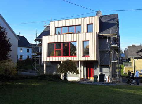 Der Gebäudestandard wurde durch geeignete Dämmmaßnahmen, Fenster mit entsprechenden U-Werten und Wahl der Anlagentechnik erreicht.