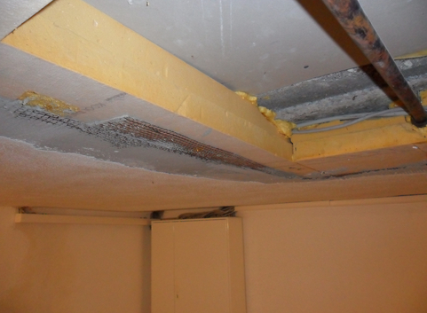 Die Kellerdecke wurde unterseitig mit einer 10 cm starken Dämmung aus Polyurethan (WLG 022) gedämmt. Der U-Wert der Kellerdecke konnte von 2,43 W/(m²*K) auf 0,17 W/(m²*K) verbessert werden.