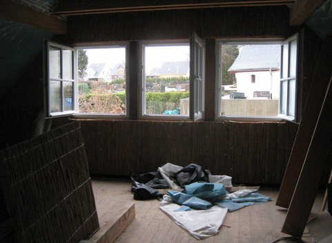 Das Dach wurde zwischen den Sparren mit 18 cm Mineralwolle (WLG 035) gedämmt. Zusätzlich wurde eine Untersparrendämmung aus Mineralwolle (WLG 035) von 8 cm eingebaut. Der U-Wert des Daches konnte von 4,68 W/(m²*K) auf 0,14 W/(m²*K) verbessert werden.