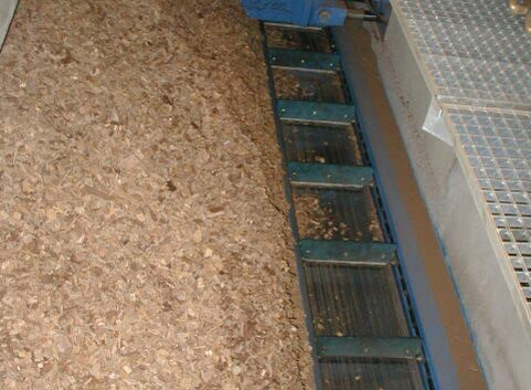 Eine besondere Herausforderung war die Planung und der Bau des erforderlichen Lagerraums aufgrund der Steillage und der sehr beengten Platzverhältnisse. Das Hackschnitzellager wurde direkt an die Wärmezentrale vor dem Schulgebäude errichtet. Da sich das Lager größtenteils im Erdreich befindet, ist es sehr unauffällig und kann von außen durch eine verschiebbare Dachluke mit Hackschnitzeln befüllt werden. Das Lager fasst ungefähr 140 Schüttraummeter (srm). Bei Volllast, z.B. an kalten Wintertagen, reicht diese Menge für ca. sechs Tage.