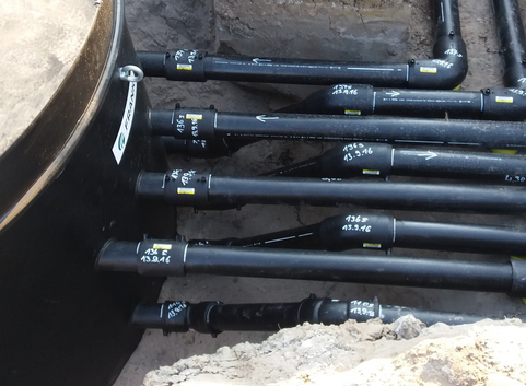 Insgesamt wurden in einem Bohrfeld 28 Bohrungen mit einer Tiefe von je 95m abgeteuft. Mittels Doppel-U-Rohr-Sonden wird das Trägermedium über ein zentrales Versorgungsnetz zu den einzelnen Endkunden transportiert.