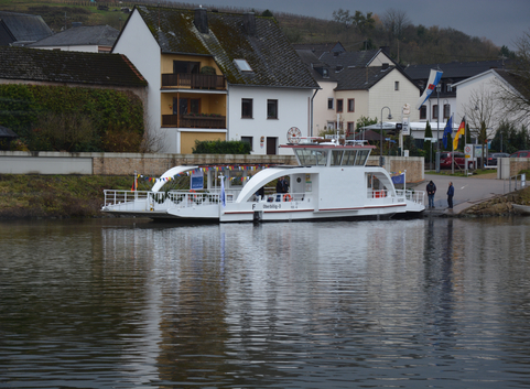 Seit 10.12. 2017 ist die Sankta Maria II zwischen den beiden Moselgemeinden Oberbillig (D) und Wasserbillig (L) im Einsatz. Die moderne und weltweit erste Elektro-Transportfähre auf einem Binnengewässer wird von vier Sail-Drive Elektromotoren mit jeweils 20 kW angetrieben.