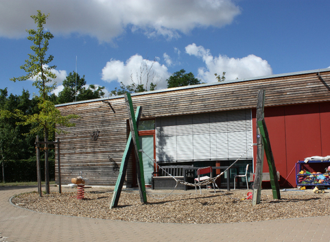 Die Stadt Alzey braucht für ihre Kinder mehr Kapazitäten für die Betreuung in einer Kindertagesstätte. Durchgesetzt hat sich ein Baukonzept mit äußerst geringem Heizbedarf, das als eine nachhaltige sowie optische Besonderheit eine Holzfassade aufweist.