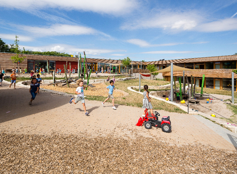 Durch den Einsatz von Trennwänden können die Räume ganz flexibel gestaltet werden. So können kleinere Einheiten entstehen, die zum Beispiel für die Sprachförderung und andere Angebote genutzt werden können. Zusätzliche Akzente bilden der begehbare Lichthof mit einem Baum und „Ausblickboxen“ bei den Garderoben der Gruppen, von denen die Kinder ins Freie schauen können.