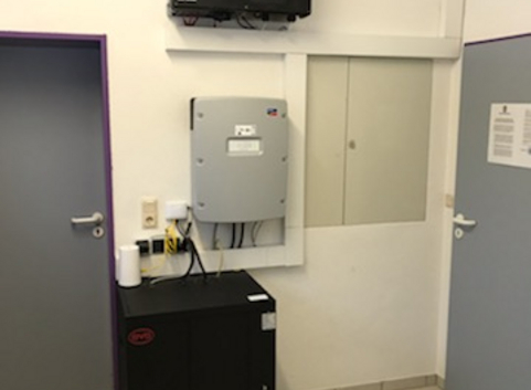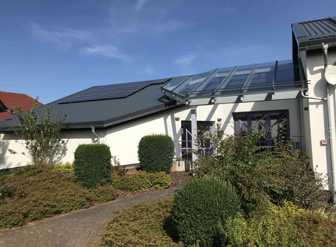 Es wurde eine PV-Anlage mit insgesamt 90 Modulen installiert, wobei 66 Module auf dem Hauptdach und 24 auf dem Anbau verlegt wurden. Je nach Wetterlage können somit 27.000 kWh Strom pro Jahr erzeugt werden. Zusätzlich wurde ein Batteriespeicher installiert, um den Eigenstromverbrauch zu decken.