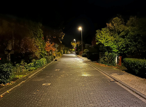 Mit der Anlagenerneuerung konnte zudem, nach Aufmaß der zu beleuchtenden Verkehrsflächen und lichttechnischen Berechnungen durch Anpassung der Lichtpunkthöhen und Leuchtenabstände, eine gleichmäßige und zielgerichtete Ausleuchtung und damit eine Verminderung von Lichtemissionen erreicht werden. Insgesamt wurden im Rahmen der Straßenbeleuchtungskonzepte 2021/2022 in 37 Straßen 355 LED-Leuchten montiert.