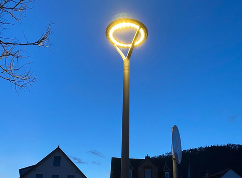 Zur Reduzierung der Lichtemissionen wurden nur Leuchten mit einer ULR = 0 installiert. Zur Verbesserung des Insektenanflugverhaltens wurden alle Leuchten mit einer Lichtfarbe von 3.000 Kelvin installiert. Durch den Betrieb der LED-Leuchten in der Zeit von 22.00 Uhr bis 5.30 Uhr auf einem um 50 % reduzierten Niveau werden weitere Einsparpotentiale hinsichtlich Energie und CO2-Fußabdruck genutzt.
