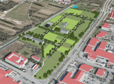 Für die verbleibenden 30 % ist eine weitere Wärmepumpe mit Pufferspeicher vorgesehen, die mit erneuerbarem Strom aus der Region betrieben wird. Dadurch entsteht eine nahezu CO2-neutrale Wärmeversorgung, die zugleich Versorgungssicherheit und stabile Betriebskosten gewährleistet. Die Stromversorgung erfolgt überwiegend dezentral über Photovoltaikanlagen auf den Dächern der Gewerbegebäude. Ergänzend ist die Installation von PV-Carports mit Ladeinfrastruktur für Elektrofahrzeuge vorgesehen.