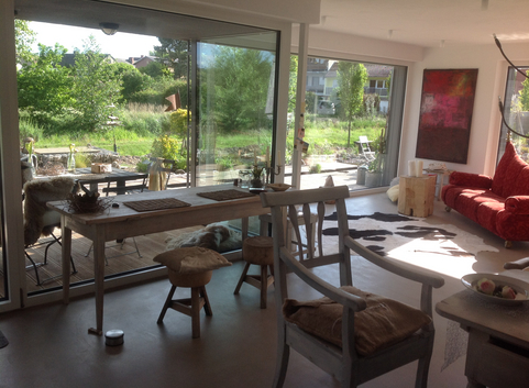 Es wurden Holz-Aluminium-Fenster mit einem 3-Scheiben Hochleistungsisolierglas Ug = 0.53 W/(m²*K) eingebaut. Uw = 0.65 W/(m²*K)