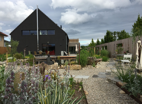 Der Gebäudestandard wurde durch geeignete Dämmmaßnahmen, Fenster mit entsprechenden U-Werten und der Wahl der Anlagentechnik erreicht.