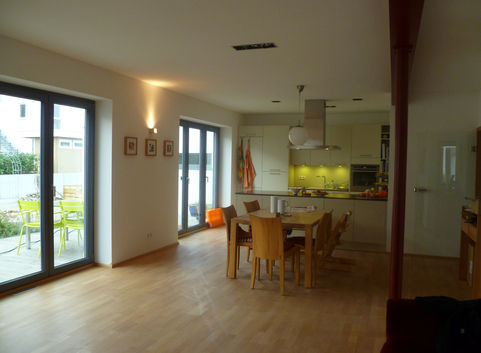 Der Gebäudestandard wurde durch geeignete Dämmmaßnahmen, Fenster mit entsprechenden U-Werten und die Wahl der Anlagentechnik erreicht.