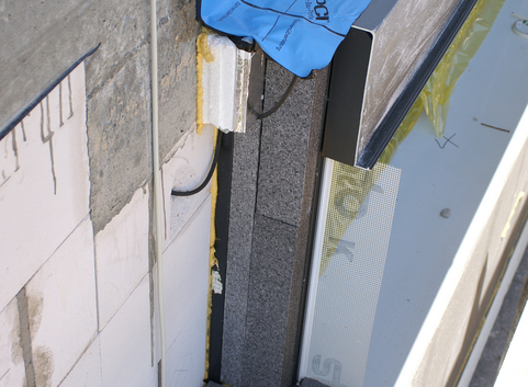 Die Außenwände wurden aus 17.5 cm starken Kalksandsteinen gemauert und mit einer 30 cm starken Dämmung aus Polystyrol EPS (WLG 035) verkleidet. Der U-Wert der Außenwand beträgt 0.11 W/(m²*K).