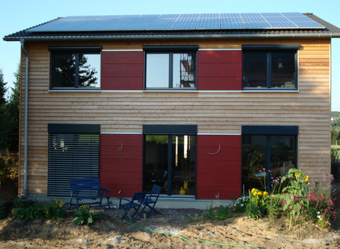 Der Gebäudestandard wurde durch geeignete Dämmmaßnahmen, Fenster mit entsprechenden U-Werten und der Wahl der Anlagentechnik erreicht.