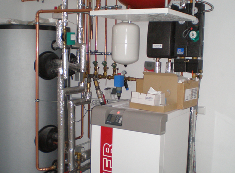 Die Beheizung erfolgt über eine Luft-/Wasser Wärmepumpe und wird von einer solarthermische Anlage unterstützt. Die Wärmeübertragung erfolgt über eine Fußbodenheizung.