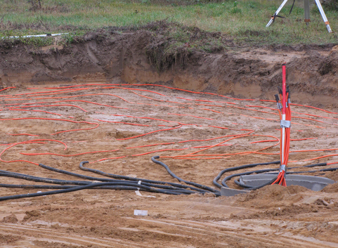 Die Beheizung und Warmwasserbereitung erfolgt über eine 7.68 kW Erdreich-Wärmepumpe mit Direktverdampfung. und einer Jahresarbeitszahl von 4,.99. Die Flächenkollektoren der Wärmepumpe sind 490 m lang und auf einer Fläche von 245 m² verlegt. Die Wärmeübertragung erfolgt über eine Fußbodenheizung.
