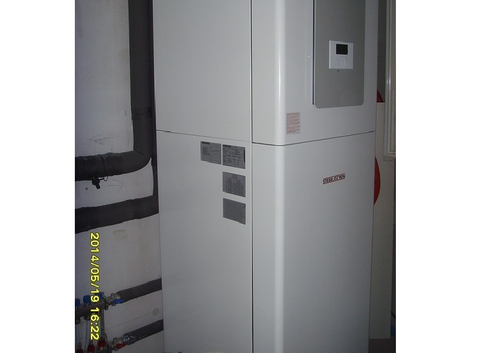 Eine Sole/Wasser-Wärmepumpe mit einer Leistung von 5,8 kW und einer Jahresarbeitszahl von 4,8 übernimmt die Beheizung des Gebäudes. Die Wärmeübertragung erfolgt über Fußboden- und Deckenheizung.