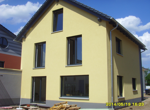 Es wurden Kunststofffenster mit 3-fach Isolierverglasung mit einem Ug=0,60 W/(m²*K) eingebaut. Uw= 0,81 W/(m²*K)