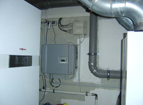 Eine Luft/Wasser-Wärmepumpe mit einer Leistung von 7,57 kW und einer Jahresarbeitszahl von 3,6 übernimmt die Beheizung des Gebäudes. Die Wärmeübertragung erfolgt über Flächenheizungen.