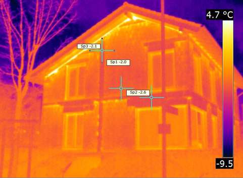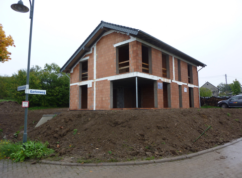Die Außenwände aus 36.5 cm dicken Porotonsteinen wurden nicht gedämmt. Der U-Wert der Außenwand beträgt 0.26 W/(m²*K).