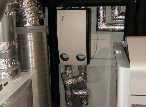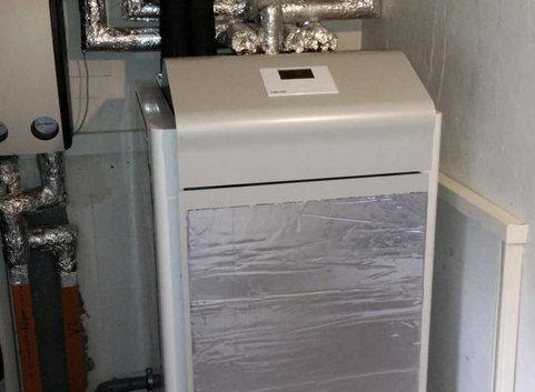 Die Heizungsanlage besteht aus einer strombetriebenen Wärmepumpe mit Erdwärme (über zwei 65 m Tiefenbohrungen). Die Wärmepumpe wird sowohl zum Heizen im Winter als auch zum Kühlen im Sommer genutzt.