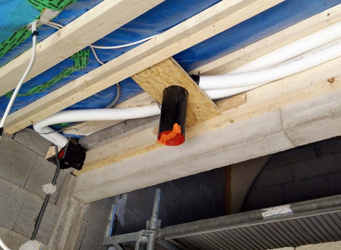 Die Dachkonstruktion wurde zwischen den Sparren mit 40 cm Mineralwolle (U-Wert 0,036 W/m²*K) gedämmt. Als Putzträger wurden 3,5 cm dicke Heratektaplatten mit Stufenfalz eingebaut (U-Wert 0,045 W/mK).