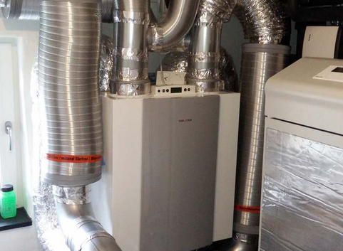 Die Lüftungsanlage verfügt über einen Luft-Wärme-Tauscher sowie einen Pollenfilter und garantiert so saubere Luft. Die Frischluft wird im Garten angesaugt und wird im Boden ca. 25 m bis zum Haus geleitet. Je nach Jahreszeit wird somit die Zuluft gekühlt oder erwärmt. Zusätzlich wird die Anlage im Sommer ohne Wärmetauscher betrieben (Bypass). Die Raumluft wird am Tag 6x ausgetauscht und der Wärmerückgewinnungsgrad beträgt bis zu 90%.