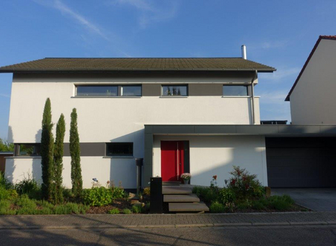 Das in Holzständebauweise errichtete Einfamilienhaus erreicht den energetischen Standard eines Effizienzhauses 40. Durch die zusätzliche Installation einer großen Photovoltaikanlage wird es zum Energiegewinnhaus.
