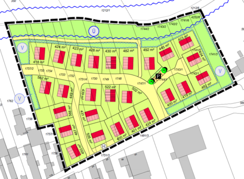 Durch die Errichtung eines kalten Nahwärmenetzes als innovative Lösung kann eine attraktive und umweltfreundliche Wärmeversorgung des Neubaugebiets sichergestellt werden. Durch Erdwärmesonden wird thermische Energie aus dem Erdreich gewonnen, welche ganzjährig auf nutzbarem Niveau an die angeschlossenen Gebäude übergeben wird. Die Sole-Wasser-Wärmepumpen in den Haushalten heben die Vorlauftemperaturen aus dem Netz weiter an und machen die Wärme somit nutzbar. Werden diese mit Strom aus einer Photovoltaik-Anlage betrieben, ist die Wärmeversorgung sogar CO2-frei. Im Sommer ist je nach Wärmepumpe eine Kühlung über die Fußbodenheizung ohne zusätzlichen Stromeinsatz möglich. Dadurch wird eine kostengünstige Wärme- und Kälteversorgung möglich.
