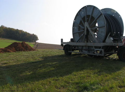 Von der Biogasanlage bis zur Heizzentrale im Neubaugebiet wurde eine 700 Meter lange Zuleitung (Vor- und Rücklauf) aus Verbund-Wellrohr verlegt. Diese musste einem Höhenunterschied von ca. 60 Meter standhalten.