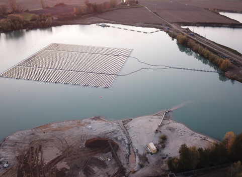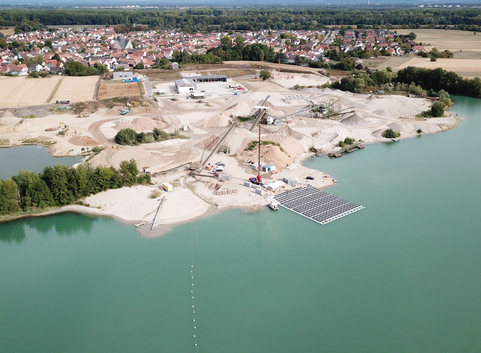 Durch die Aufbringung der PV-Anlage auf dem Baggersee ergeben sich mehrere positive Synergieeffekte, zum einen kommt es zu einer besseren Moduleffizienz bedingt durch den kühlenden Effekt des Wassers. Zudem verringert sich gerade durch eine Folgenutzung bzw. simultane Nutzung mit PV-Anlagen auf bergbaulich geprägten Landschaften, wie bspw. auf Baggerseen, der Flächenverbrauch an Land.
