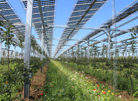 Das an die Anbaukultur angepasste Anlagendesign soll einen maximalen Schutz vor Wetterereignissen bieten. Im Vordergrund steht dabei die landwirtschaftliche Nutzung der Fläche zum Anbau von qualitativ hochwertigen Äpfeln, während die Produktion von Solarstrom etwas in den Hintergrund tritt. Der Synergie zwischen Landwirtschaft und Solarstromproduktion kommt gerade bei räumlicher Nähe zum Hof eine gesonderte Funktion zu, der Solarstrom kann bspw. zum Betrieb der Kühlhäuser oder zur Elektrifizierung der Landmaschinen genutzt werden. Der Eigenverbrauch des Solarstroms trägt sowohl dazu bei die Strombezugskosten zu reduzieren als auch zur betrieblichen CO2- Einsparung.