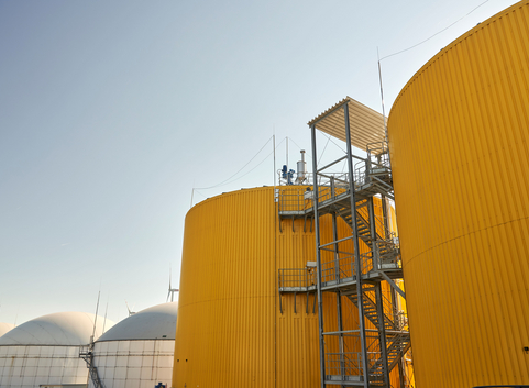 Die zerkleinerten Pflanzen werden mit Gärsubstrat gemischt und in die sogenannten Fermenter gepumpt. Hier wandeln Bakterien die pflanzlichen Rohstoffe bei einer Temperatur von ca. 40 °C in Methan und Kohlendioxid um. Dadurch entsteht nach ca. 100 Tagen Roh-Biogas.