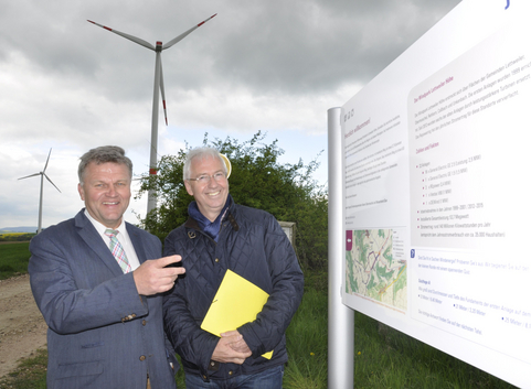 Die neuen, von juwi gestalteten Infotafeln entlang der Rundwanderwege tragen dieser Entwicklung Rechnung und informieren wissbegierige Wanderer über Geschichte, Technik und Entwicklungen der Windenergie.