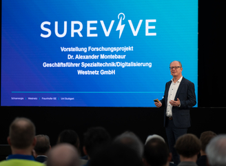 Als Teil des Forschungsprojekts SUREVIVE werden im Echtbetrieb netzbildende Funktionen wie Momentanreserve, Frequenzhaltung und Schwarzstartfähigkeit untersucht, um Erkenntnisse für den flächendeckenden Einsatz von Großspeichern zu gewinnen.