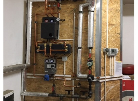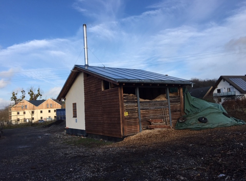 Die Beheizung des großen Hauses sollte CO2 neutral über einen Holz-Hackschnitzelkessel und eine große Solarthermie-Anlage erfolgen. Zur Erhöung der Effizienz bot es sich an, weitere Gebäude mit anzuschließen.