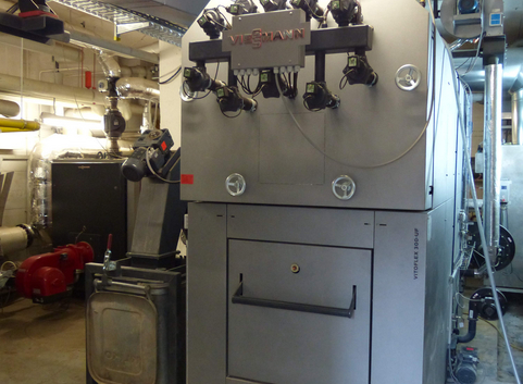 Drei Wohnblöcke Bj 1972 mit je 50 Wohnungen hingen bereits durch Wärmeleitungen verbunden an einer Heizzentrale. Die Wohnungseigentümergemeinschaft (WEG) entschloss sich, die Heizölfeuerung durch eine Kombination von Hackschnitzeln und Erdgas als Contractinganlage zu ersetzen.